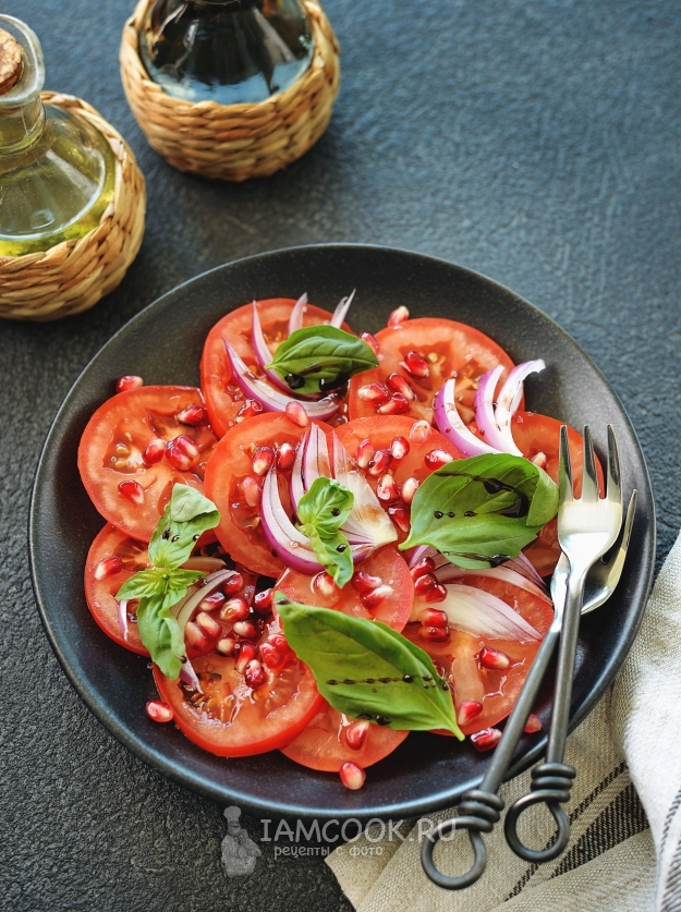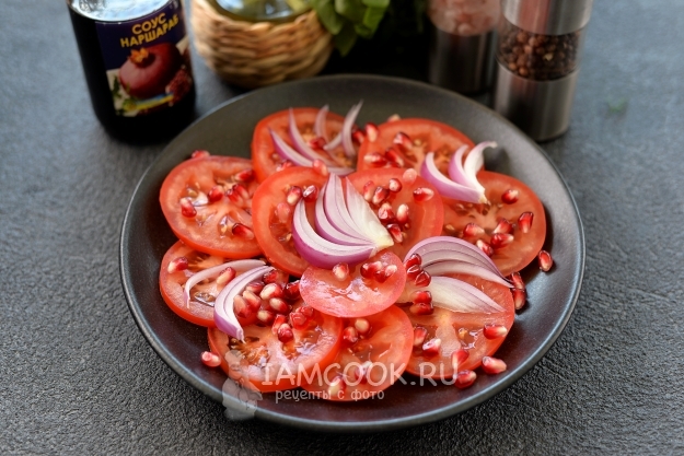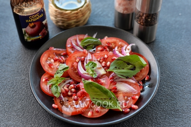 Бакинский салат с помидорами и гранатом готов.