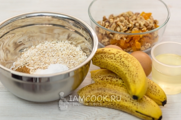 Для приготовления пряного бананового хлеба с овсяными хлопьями подготовьте продукты по списку.