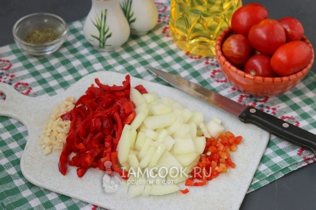 В ингредиентах указала 1 помидор - на случай, если он будет крупный. Мелких, как у меня, нужно 6-8 штук.