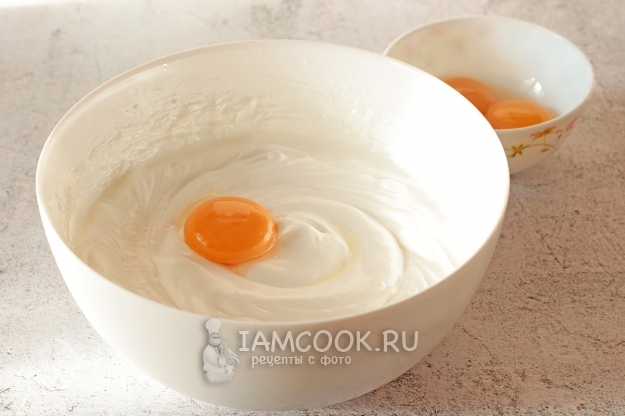 Сначала разделите яйца на белки и желтки. Важно, чтобы в белки не попала и капля желтка, иначе они хорошо не взобьются.