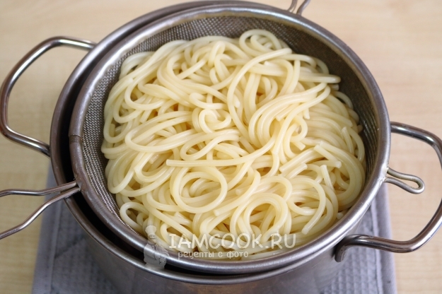 Готовые макароны откидываем на дуршлаг, даём воде стечь.