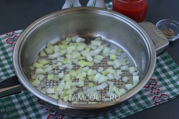 Почистить лук и чеснок, лук нарезать небольшими кубиками.