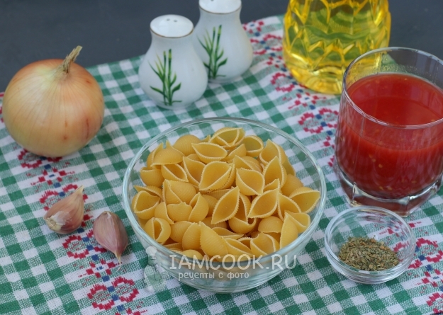 Макароны подойдут любые, желательно твёрдых сортов, впрочем, других я и не покупаю. В качестве трав можно использовать смесь прованских или итальянских трав либо взять по щепотке отдельные травы, которые есть у вас дома. Я взяла смесь тимьяна, базилика и орегано. Что касается томата, то самое простое - разбавить томатную пасту или готовый соус водой, но можно взять помидоры в собственном соку или густой домашний томатный сок. Я использовала последний вариант.