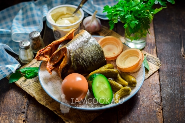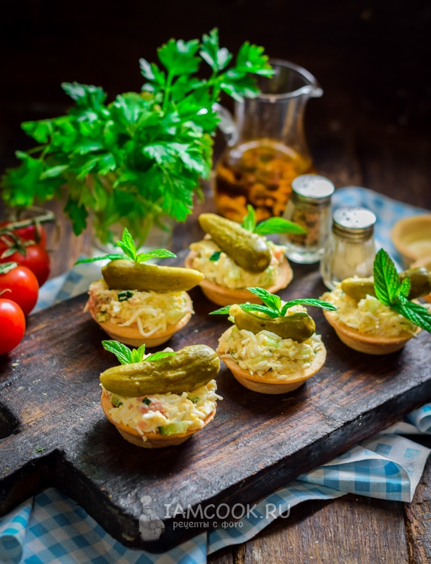 Наполнить песочные тарталетки приготовленной смесью, по желанию добавить корнишоны. Подавать тарталетки с копченой горбушей к столу.