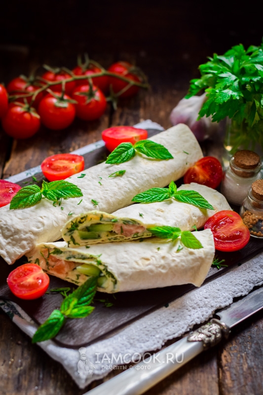 Готовим рулет из лаваша, красной рыбы и плавленого сыра – просто и очень-очень вкусно, подойдет для перекуса или основного приема пищи. Лаваш для рецепта у меня был круглый, порционный, очень удобно. Семгу можно взять слабосоленую или прикопченную – какая вам больше нравится. Обязательно добавим в лаваш укроп и огурец – отличное сочетание, которое понравится всем. Попробуйте приготовить такие рулеты, их можно будет подать даже на праздничный стол, так что вариант отличный и вкусный – проверено много раз.