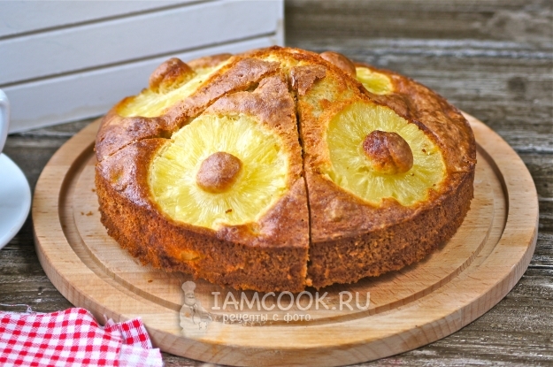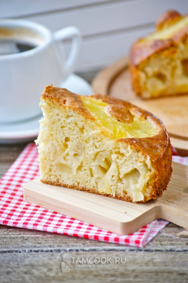 Шарлотка с ананасом готова, остудите ее и подавайте на стол.
