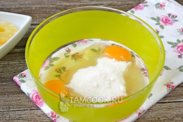 Для начала вымойте яйца, обсушите и вбейте в миску, всыпьте сахар.
