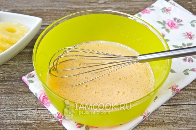 Хорошенько взбейте венчиком, чтобы сахар растворился. Можете воспользоваться миксером, он ускорит процесс.