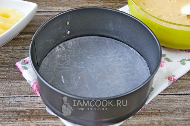 Форму для выпечки застелите пергаментом, смажьте сливочным или растительным маслом дно и стенки.