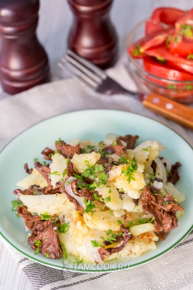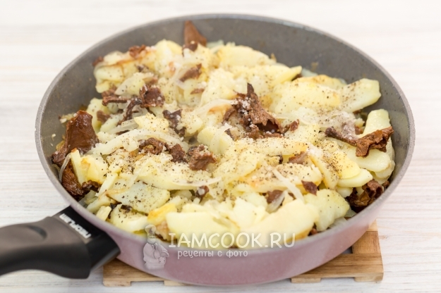Жареная картошка с сушеными лисичками - блюдо простое, вкусное, сытное и ароматное.