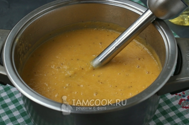 Затем выключить огонь и дать супу настояться 15-20 минут, после чего пюрировать его погружным блендером.