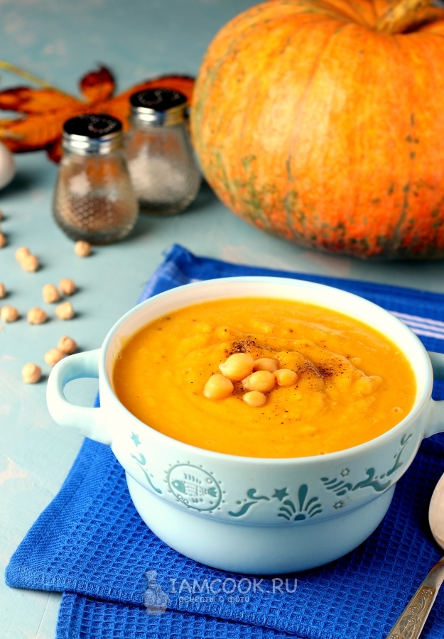 Сегодня я снова с очередным рецептом тыквенного супа-пюре, в этот раз с нутом. В супе минимум ингредиентов и готовится он довольно быстро, если нут сварить заранее. Я стала варить нут с вечера, чтобы утром не тратить на это время. В ингредиентах указываю вес отварного нута. Из трав использовала орегано, можно взять и другие травы по вашему вкусу. Чеснока можно не жалеть, он сделает вкус супа более насыщенным.