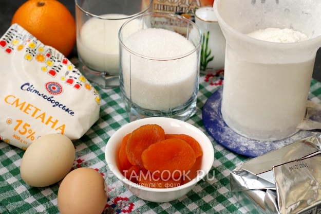 Для приготовления сметанных кексов с курагой подготовить из списка необходимые ингредиенты.