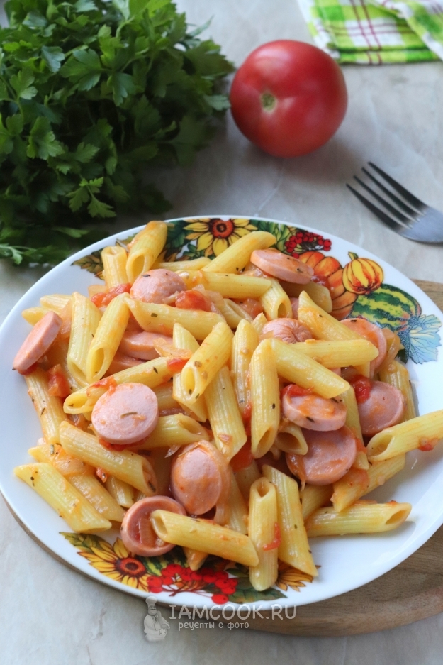 Хотите приготовить вкусное блюдо для всей семьи? Тогда воспользуйтесь данным рецептом. Макароны с сосисками и помидорами понравятся всем домочадцам без исключения. Главное, использовать качественные продукты и не переварить макароны.