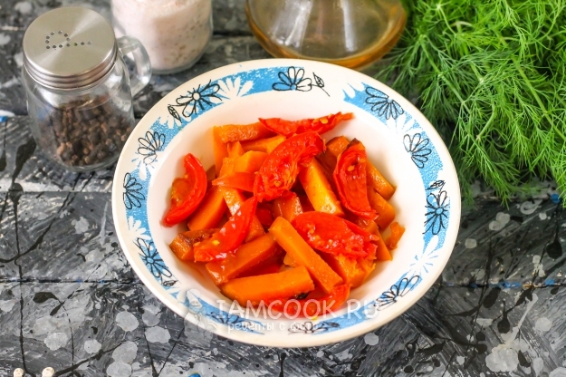 Дайте овощам слегка остыть и нарежьте их ломтиками, выложите в тарелку.