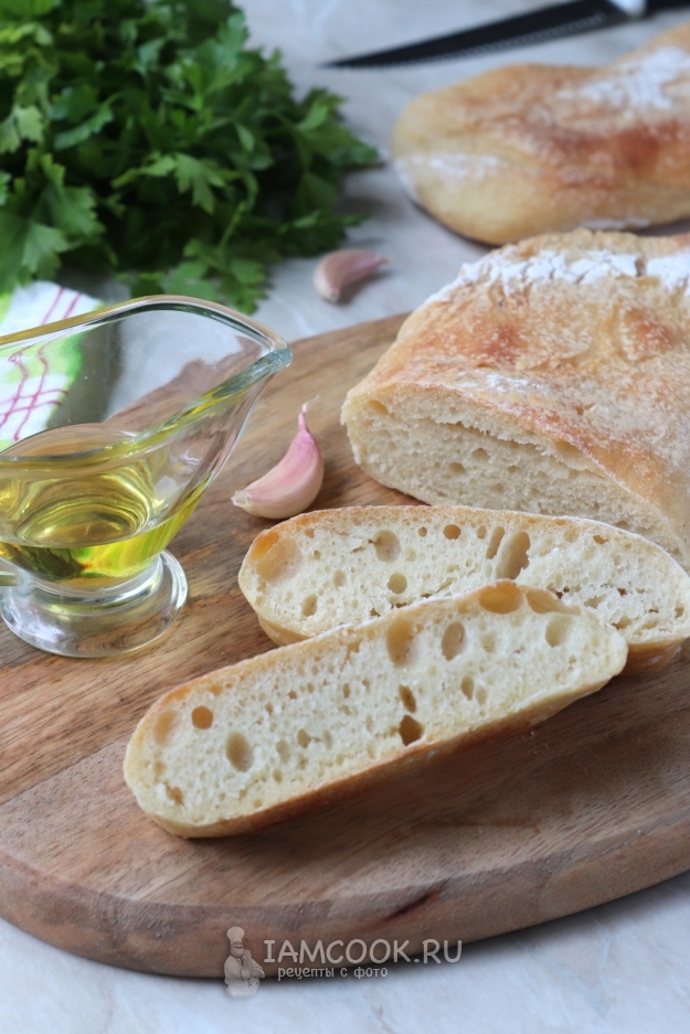 Вот и всё, вкусная, ароматная классическая итальянская чиабатта готова.