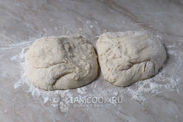 Разрежьте тесто пополам.