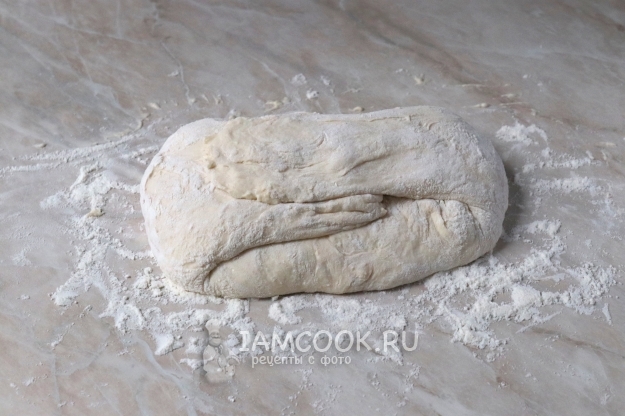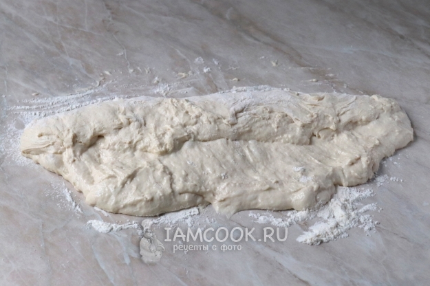 Присыпьте рабочую поверхность мукой и выложите тесто.