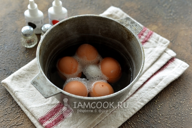 Отварите яйца в чуть подсоленной воде не дольше 10 минут.