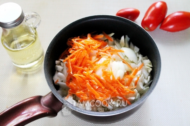 Овощи сложить в сотейник, налив в него подсолнечное масло.