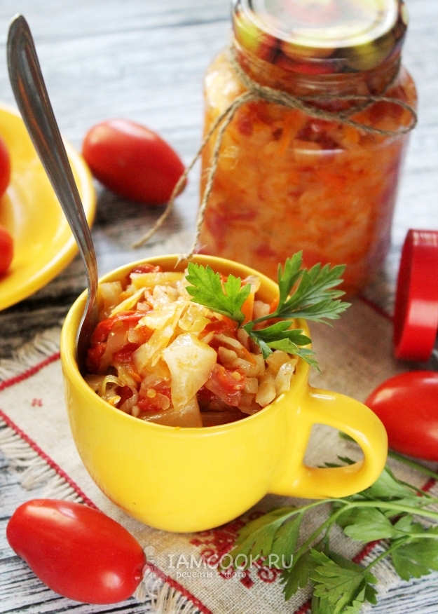 Продукты для приготовления солянки из капусты и помидоров на зиму возьмите по списку.