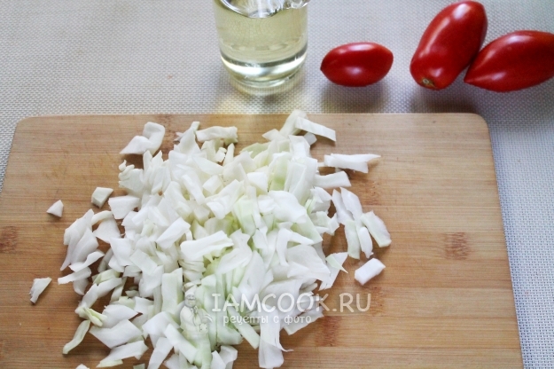 Нашинкуйте белокочанную капусту, удалив зеленые и вялые листья.