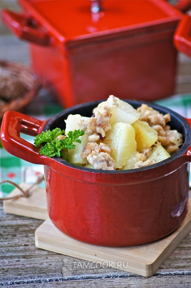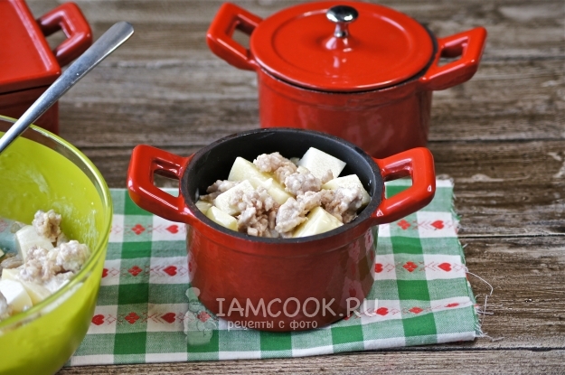 Это одно из моих любимых блюд, в приготовлении нет ничего сложного, а вкус получается обалденный. Конечно, можно приготовить в общей латке, но подача в горшочках всегда выглядит аппетитнее, на мой взгляд. В данном рецепте я использую куриный фарш, просто он мне больше нравится, а вы можете брать любой по своему вкусу.