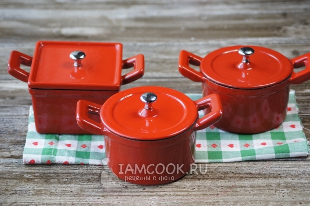 Разложим по горшочкам, нальем буквально по 50 граммов воды.