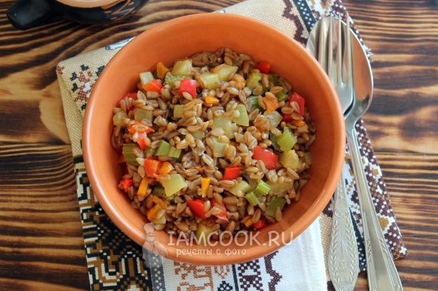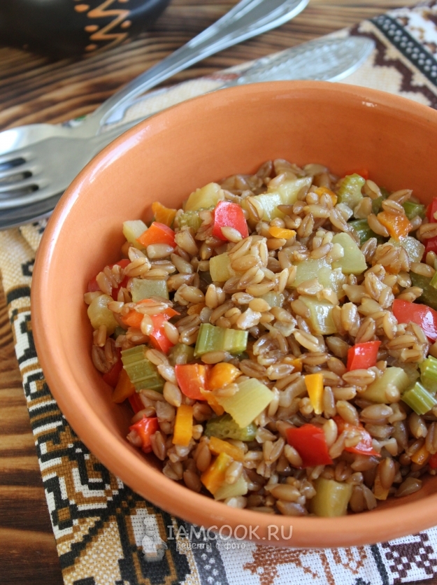 Для этого варианта полбы с овощами взяты свежие сезонные овощи, а в зимний период часть из них (перцы и кабачки) можно использовать и в замороженном виде. А также в тему будут и другие овощи, например, кому-то не лишними окажутся баклажан или помидор, корневой сельдерей, зерна кукурузы и т.д.