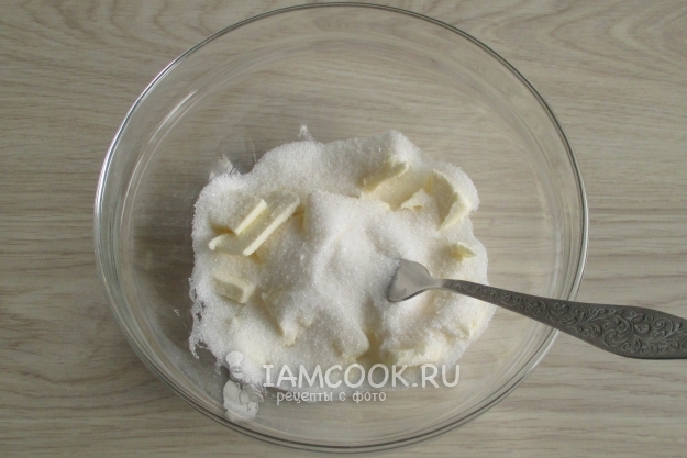 Сливочное масло размягчите при комнатной температуре. Добавьте сахар.