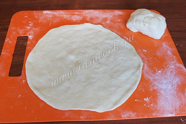 Сначала раскатайте большой кусок теста толщиной около 0,7 см и уложите его в смазанную форму.
