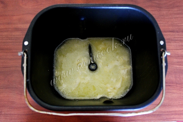 Тесто можно приготовить вручную, смазав руки растительным маслом, или при помощи кухонной техники. Сначала соедините теплое молоко с растопленным сливочным маслом и размешанным желтком яйца.