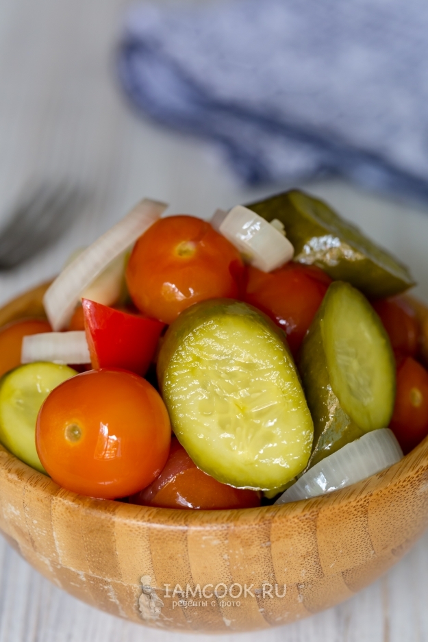 Через указанное количество времени маринованное овощное ассорти будет готово.