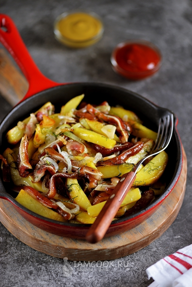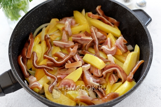 Жареная картошка с копчеными свиными ушками готова.