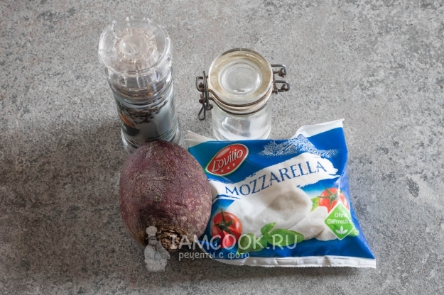 Сыр подходит не только моцарелла, а абсолютно любой плавкий. Его должно быть по весу примерно столько же, сколько и свёклы, можно чуть поменьше, больше - не нужно. На одну порцию - где-то одна средненькая свёкла. Масла для промазки форм брать не стоит, жирность сыра достаточна.