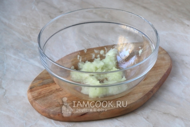 Крупную головку репчатого лука очистить от шелухи и натереть на терке со средними ячейками.