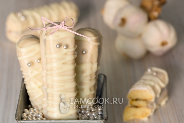 Для приготовления мумий из печенья Савоярди на Хэллоуин подготовьте продукты по списку.