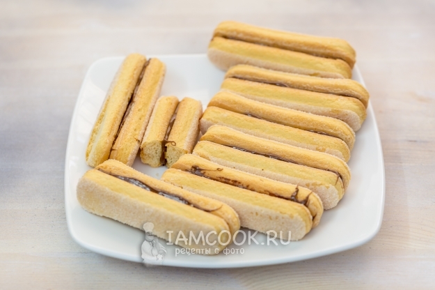 Печенье савоярди смажьте нутеллой, соедините попарно.