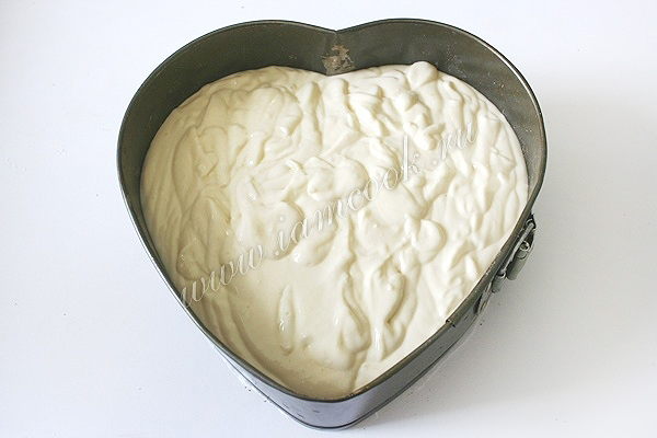 Выпекайте в разогретой до 180 градусов духовке 45-50 минут. Пирог вынимать из формы только когда он полностью остынет.