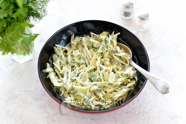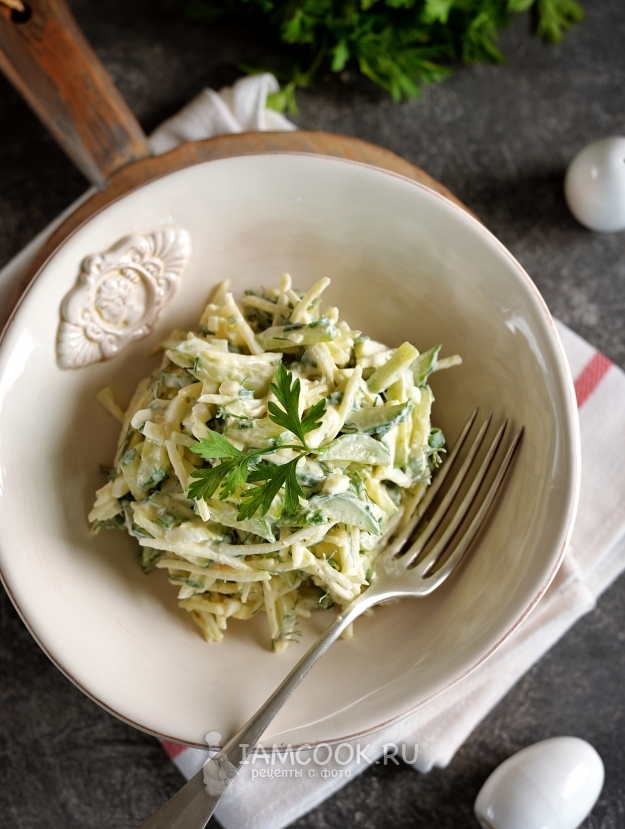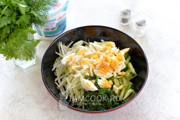 Салат из кольраби с яйцом и огурцом готов. Приятного.