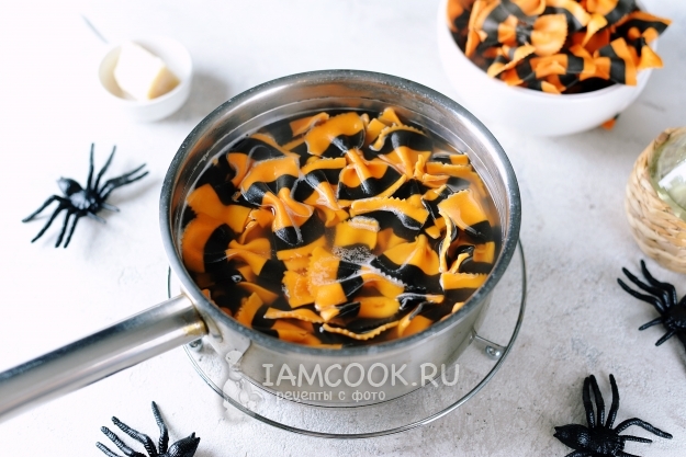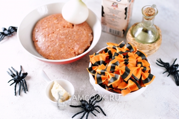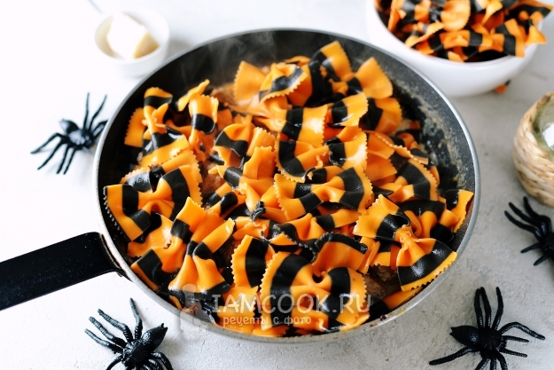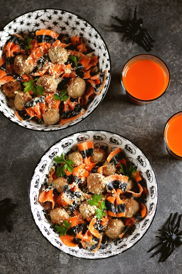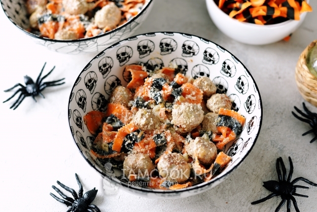 Паста фарфалле с фрикадельками на Хэллоуин готова.