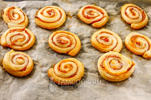Спустя 12-15 минут у вас уже будут готовы румяные улитки. Извлеките противень из духовки, нагрев выключите.