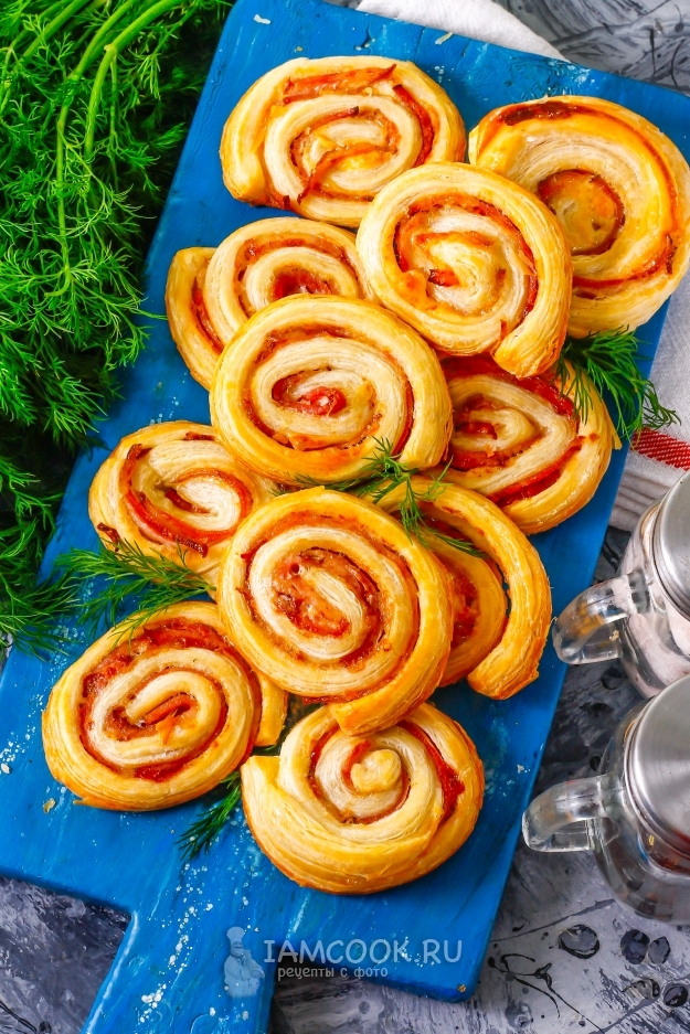 Безумно вкусные улитки с беконом из слоеного теста идеальны и к завтраку, и на обед, на перекус и к ужину. Их можно подать с ароматным горячим супом и как самостоятельную закуску с чаем. Готовятся они от силы 20-25 минут при наличии готового слоеного теста и бекона. Причем мясной продукт может быть как сырым, так и подкопченным.