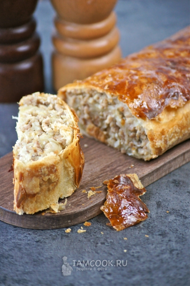 Слегка остудите. Рулет из слоеного теста с фаршем готов - нарежьте его на порционные куски. Приятного аппетита!
