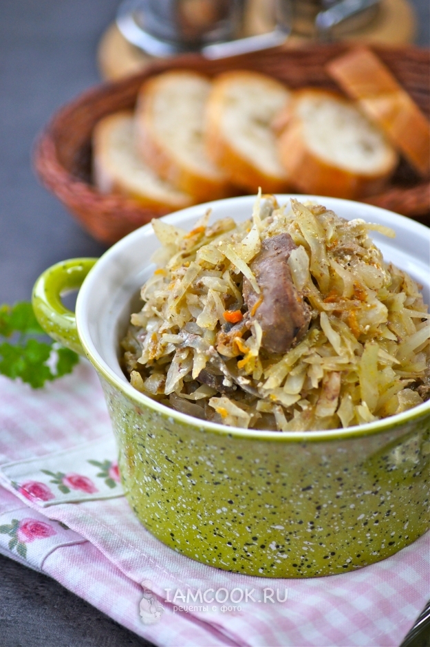 Вкусная, ароматная тушеная капуста с печенью готова, подавать нужно в горячем виде.