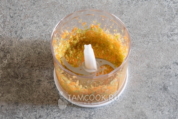 Для приготовления начинки сначала измельчаем морковку и листья пекинской капусты. Очень мелко, хотя в норме это, конечно, положено делать ножом. Я мухлюю.