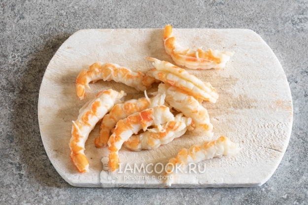 Если креветки крупные и в панцирях, то их чистим, и удаляем из спины кишечник.