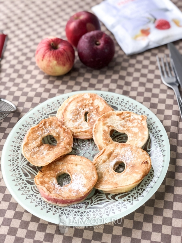 Яблочные кольца в кляре без яиц готовы, приятного аппетита.