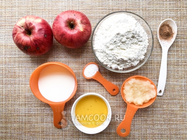 Для приготовления яблочных колец в кляре без яиц понадобятся следующие ингредиенты.