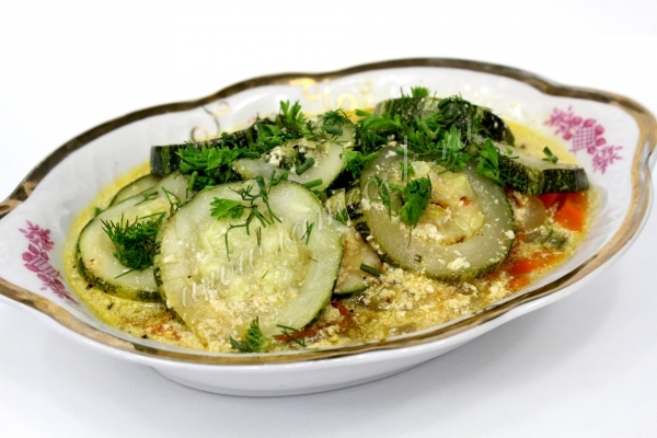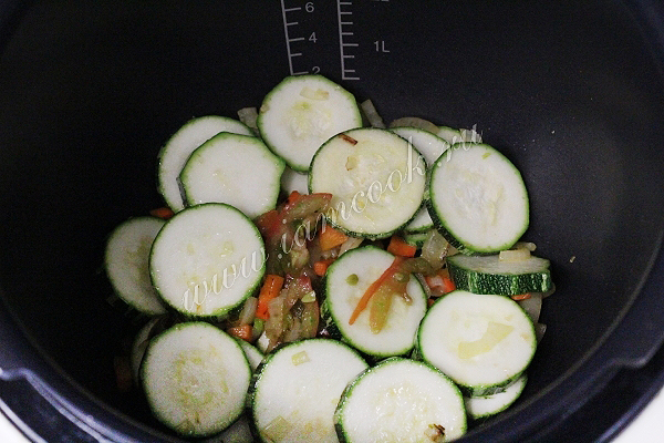 Затем кабачок, у молодого кабачка кожицу можно не счищать.